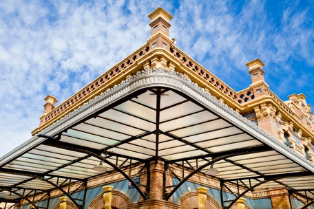 Ha sido recientemente restaurado para recuperar su esplendor y encanto tan característico, sin duda una bonita estampa de la ciudad. En la fotografía podemos apreciar el nuevo tranvía, a su paso por la avenida Juan Carlos I, el cual recorre ambos lados del edificio dando lugar a una imagen muy atractiva, combinando lo antiguo de la construcción con el moderno medio de transporte.